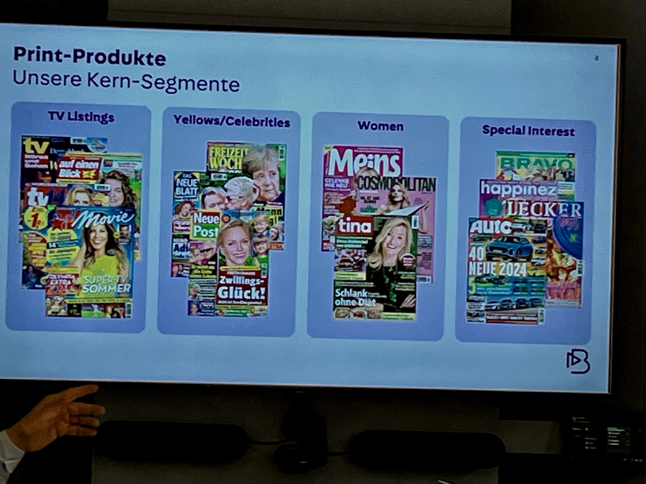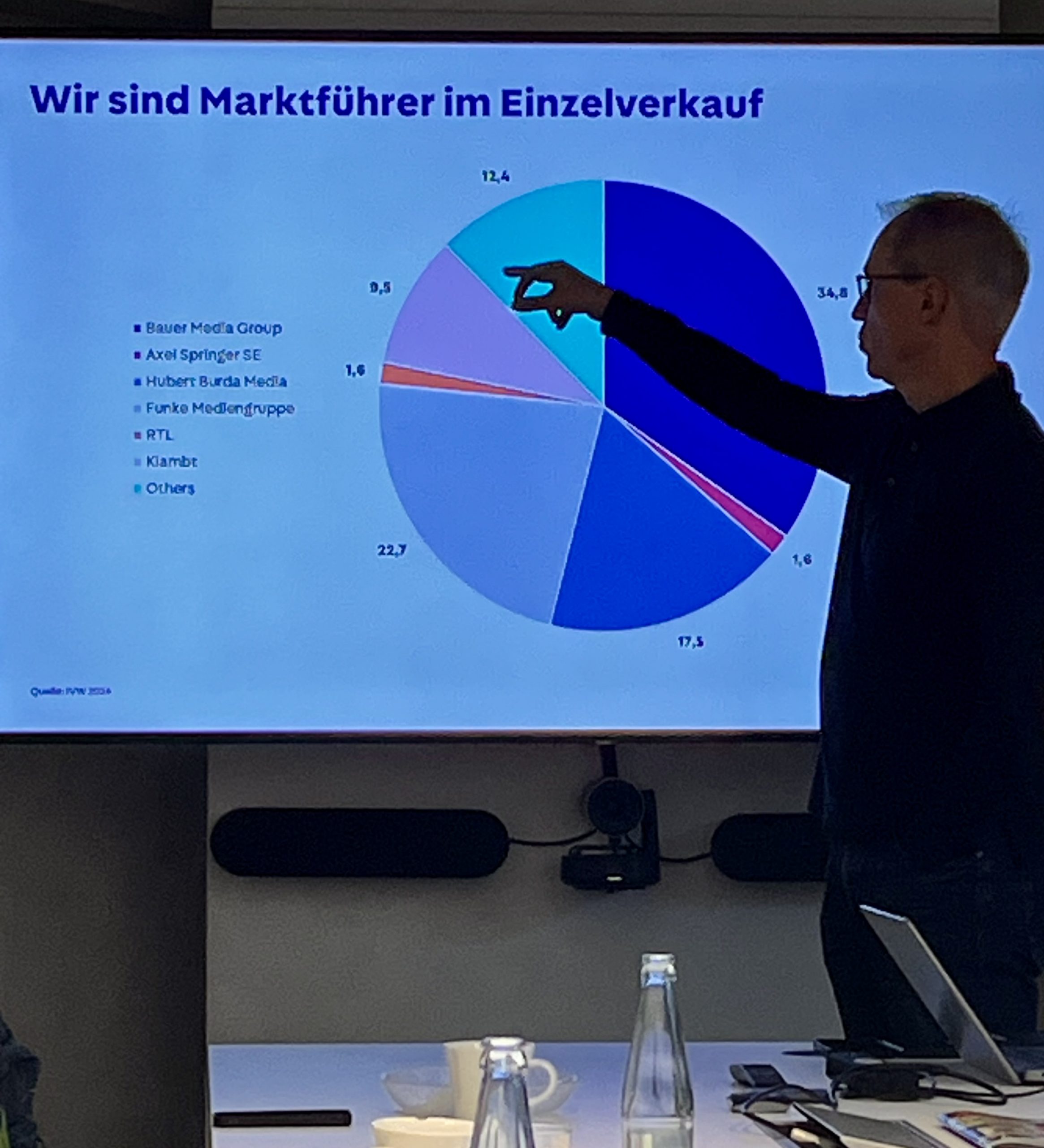 Henry Allgaier, Managing Director TV & Scence beim Bauer-Verlag und natürlich auch Alumni, zeigte zum Abschluss, wie sich einer der größten Zeitschriftenverlage Europas strukturell auf die Zeit nach den Boomern ausrichtet, wenn dann doch einmal das immer noch gute Geschäft mit den Programmzeitschriften nicht mehr laufen wird.