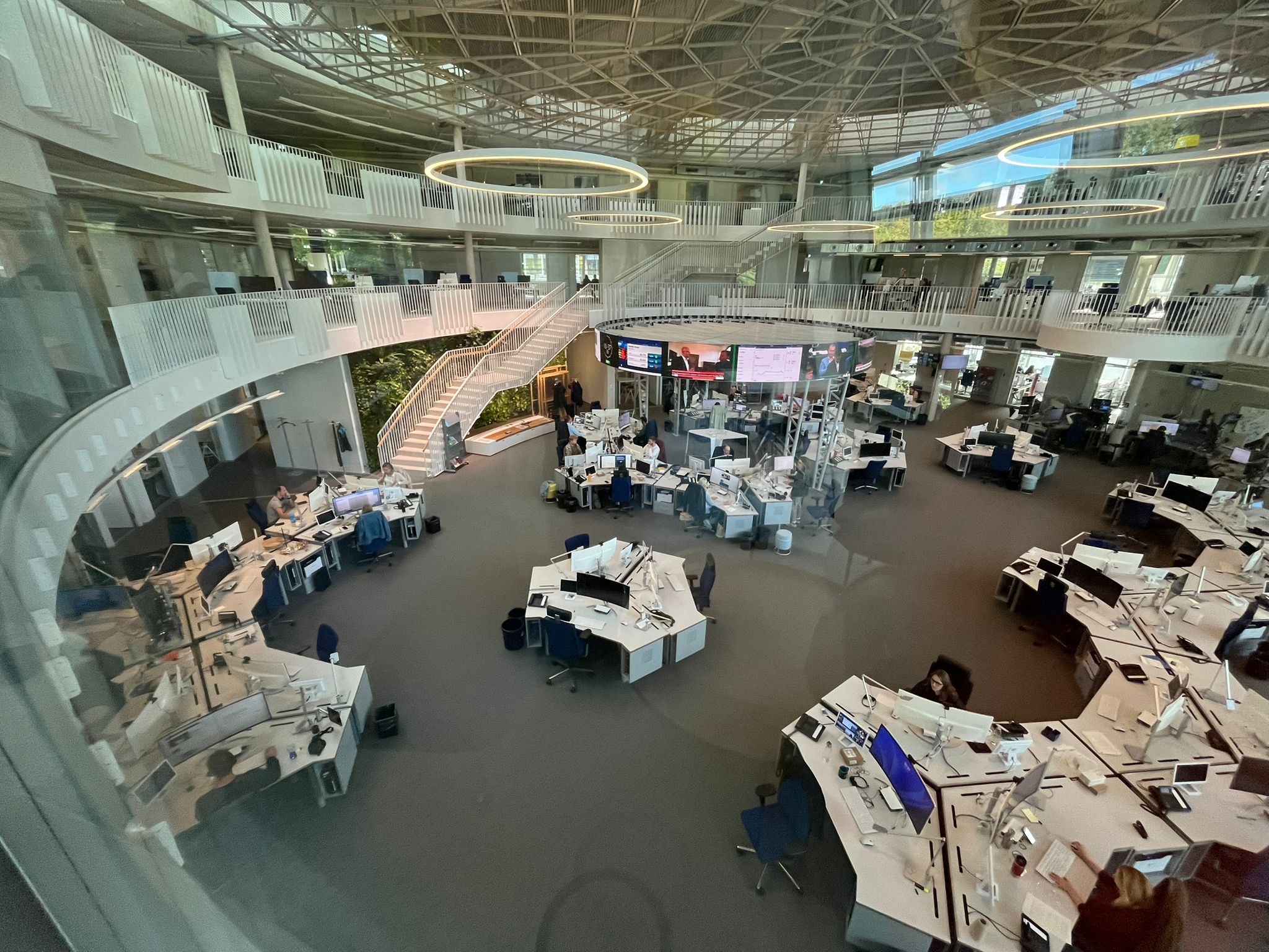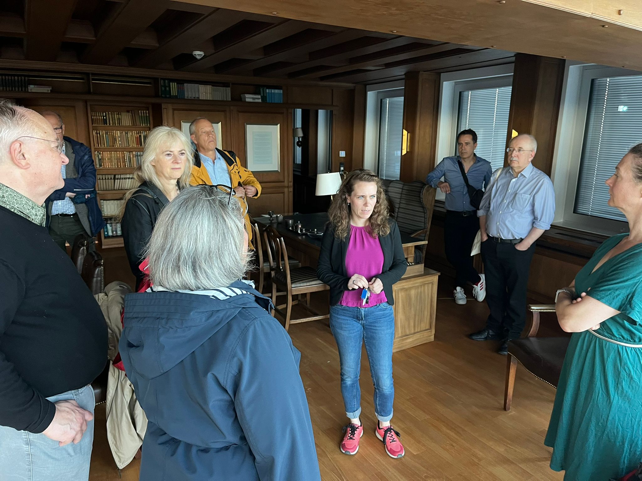 Hoch hinaus ging es bei der WELT: Zwar ist, wie Alumna Julia Witte, Managing Editor Hamburg beim Axel Springer Verlag, erläuterte, in der Hansestadt nur noch eine kleine Redaktion der Tageszeitung zuhause. Die aber berichtet buchstäblich von hoher Warte aus über Hanseatisches – sie sitzt direkt unterm Dach. Mit Zugang zur Terrasse und zum Springer-Raum, dessen holzgetäfeltes Ambiente noch immer bundesrepublikanischen Verlagskonservativismus atmet.