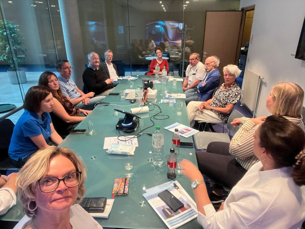 Das ARD-Hauptstadtstudio liegt in Sichtweite zum Reichstag. Es gibt für jede Partei im Bundestag ein Ressort mit Journalistinnen und Journalisten, die sich nur mit dieser auseinandersetzen – und zusätzlich für jedes Ministerium. Markus Preiß erzählte uns, wie er sich auf Interview mit Spitzenpolitiker:innen vorbereitet. Wir diskutierten über Interviewstrategien – alle Anwesenden sind ja ausgebildete Journalist:innen oder Journalistikwissenschaftler -, über Veränderungen in der Berichterstattung und inwieweit die ARD-Journalisten mit ihrer Themensetzung politische Strömungen verstärken, zum Beispiel im Kontext Migration.